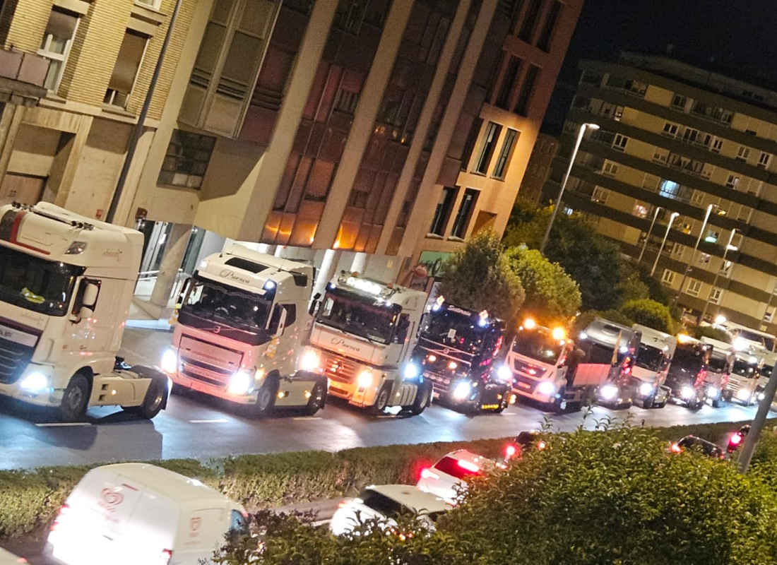 A pesar de que la autorización oficial limitaba la participación a 40 camiones, la respuesta del transporte navarro fue abrumadora. Desde primera hora de la tarde, los alrededores del Estadio El Sadar se llenaron de vehículos pesados, turismos de apoyo y decenas de personas que acudieron a mostrar su respaldo. Las bocinas, luces de emergencia y pancartas dieron comienzo a una jornada que convirtió a Pamplona en el epicentro del transporte.