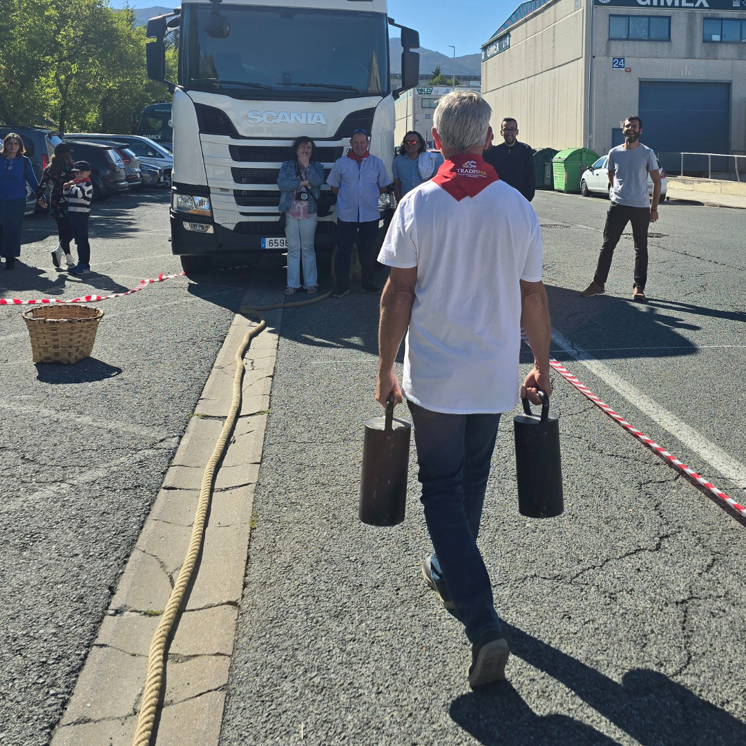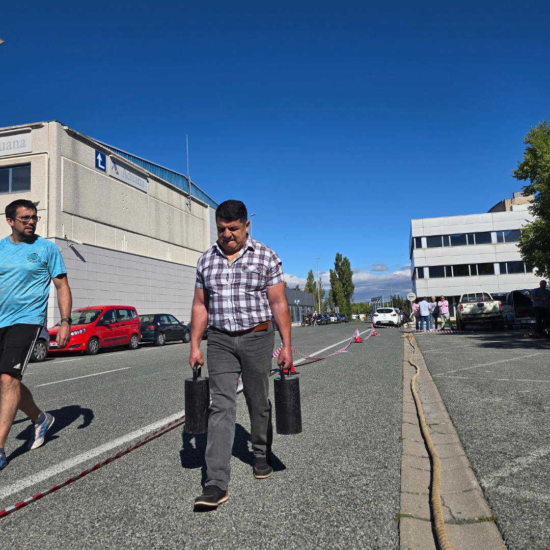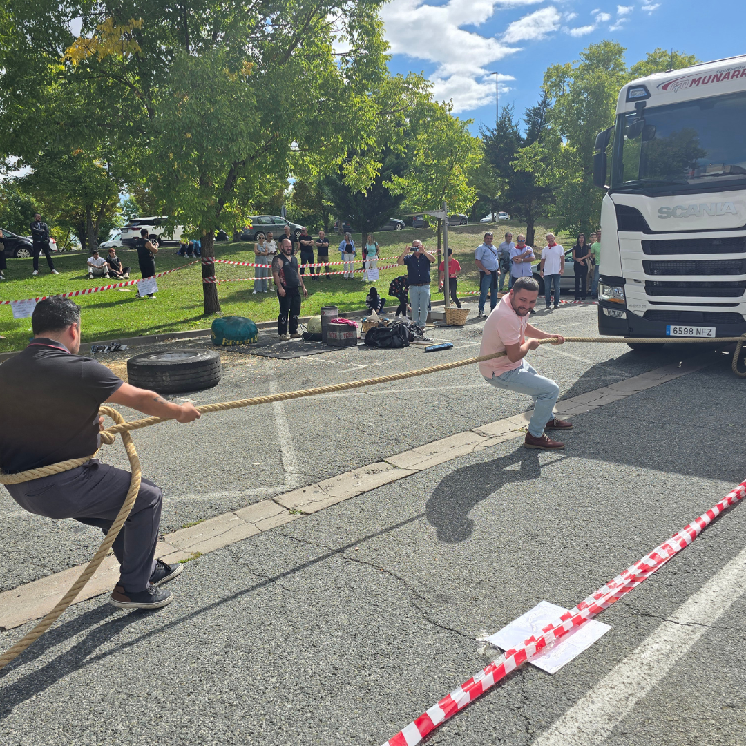 La mañana continuó con una animada exhibición de deporte rural, donde la participación y el espíritu de equipo fueron los protagonistas. Muchos socios y colaboradores se animaron a probar su fuerza en pruebas tradicionales como el levantamiento de piedra, corte de tronza o incluso el arrastre de camión, que despertó aplausos y sonrisas entre el público.