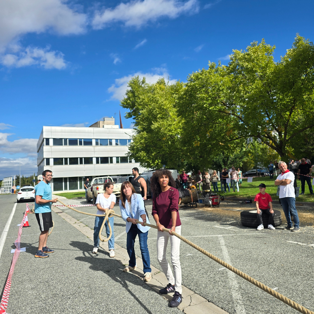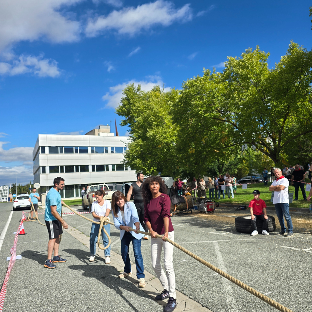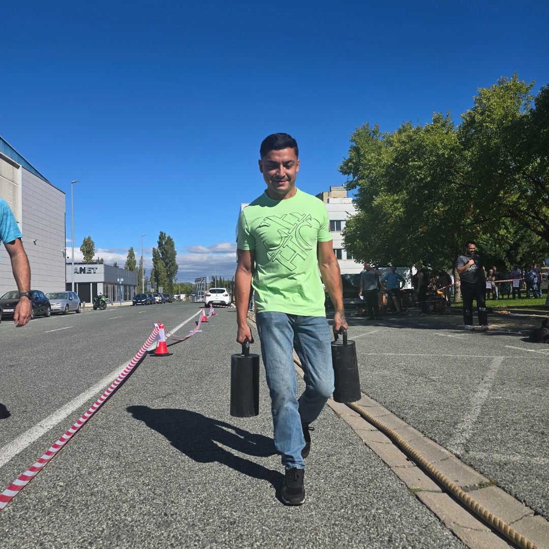 La mañana continuó con una animada exhibición de deporte rural, donde la participación y el espíritu de equipo fueron los protagonistas. Muchos socios y colaboradores se animaron a probar su fuerza en pruebas tradicionales como el levantamiento de piedra, corte de tronza o incluso el arrastre de camión, que despertó aplausos y sonrisas entre el público.