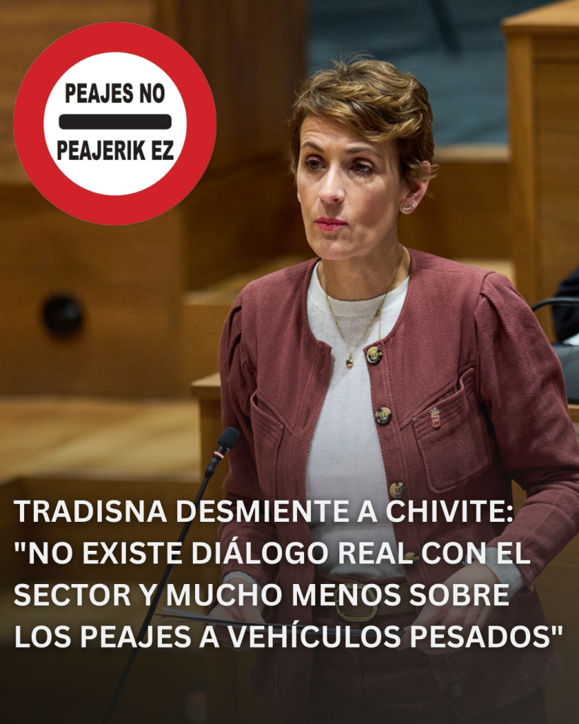Ante las afirmaciones realizadas por la presidenta del Gobierno de Navarra, María Chivite, en sede parlamentaria, en las que afirma que existe un “diálogo constante” con el sector del transporte y que las medidas vinculadas a la implantación de peajes para vehículos pesados serán “consensuadas”, desde TRADISNA queremos aclarar públicamente que el sector no ha participado en ninguna conversación sobre ello.